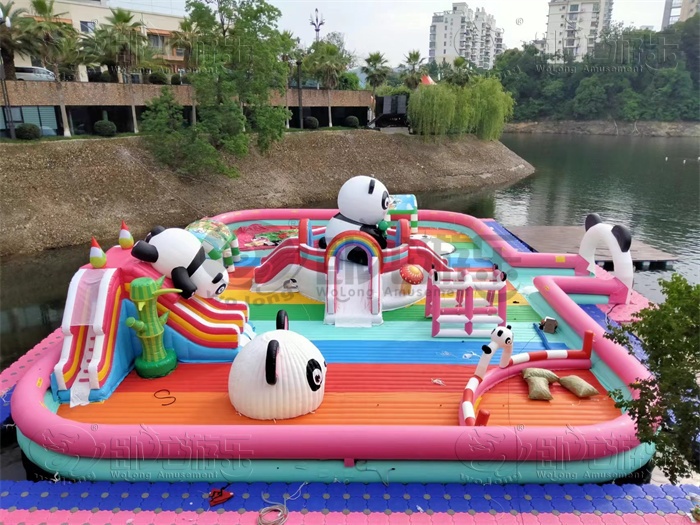 Multiple panda-themed floating water parks have been completed by Zhengzhou Wolong Amusement Equipment Co., Ltd., offering a brilliant way to make use of idle water areas and bringing new vitality to both urban and rural landscapes.